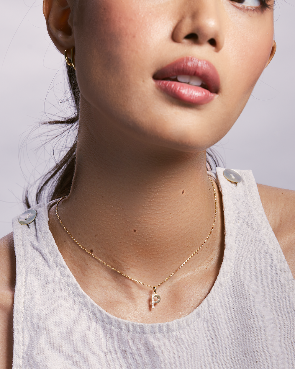 The Letter Gold Necklace is a timeless and elegant piece that allows you to keep your initials or a loved one's name close to your heart. Crafted with a delicate gold chain and a sparkling half-pav茅 letter pendant, this necklace is perfect for everyday wear or special occasions. The minimalist design makes it a versatile and meaningful gift.- +�� shipping