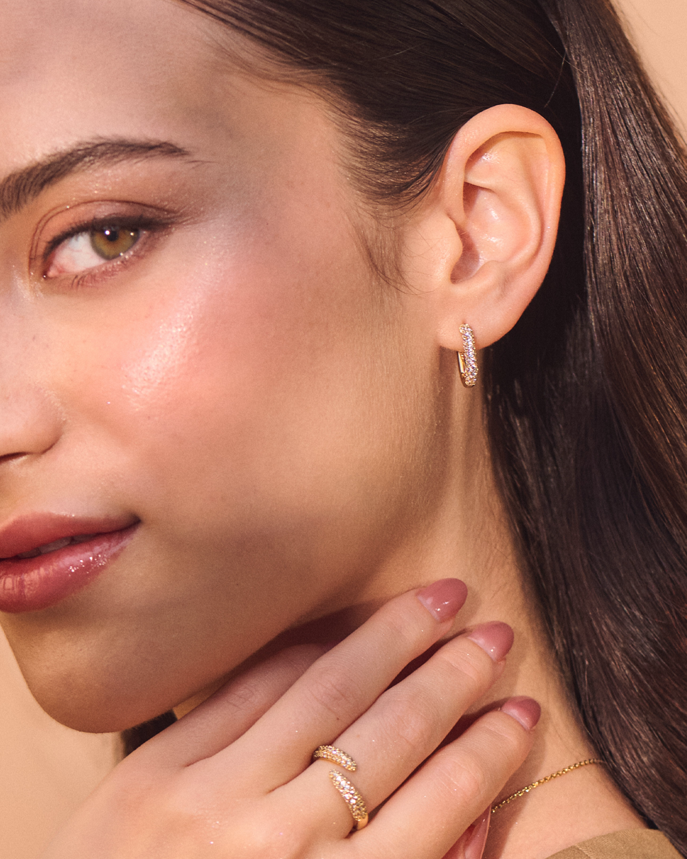 Classic shape, elevated with shine. The Vani Gold Huggies mirror the sleek look of the best selling Venus Gold Huggies, but embellished with pav茅 cubic zirconia stones for extra brilliance. It��s the touch of dainty sparkle your looks were missing.