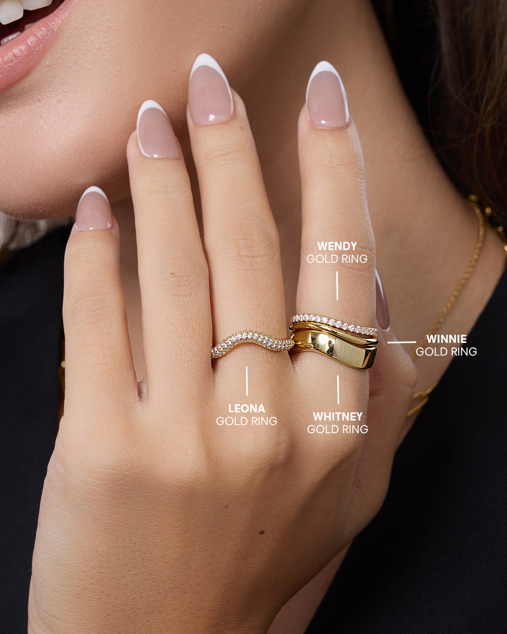 The Winnie Gold Ring is a sophisticated gold band ring with a thin curved design. A refined and elegant piece, this ring is set to elevate your everyday style.