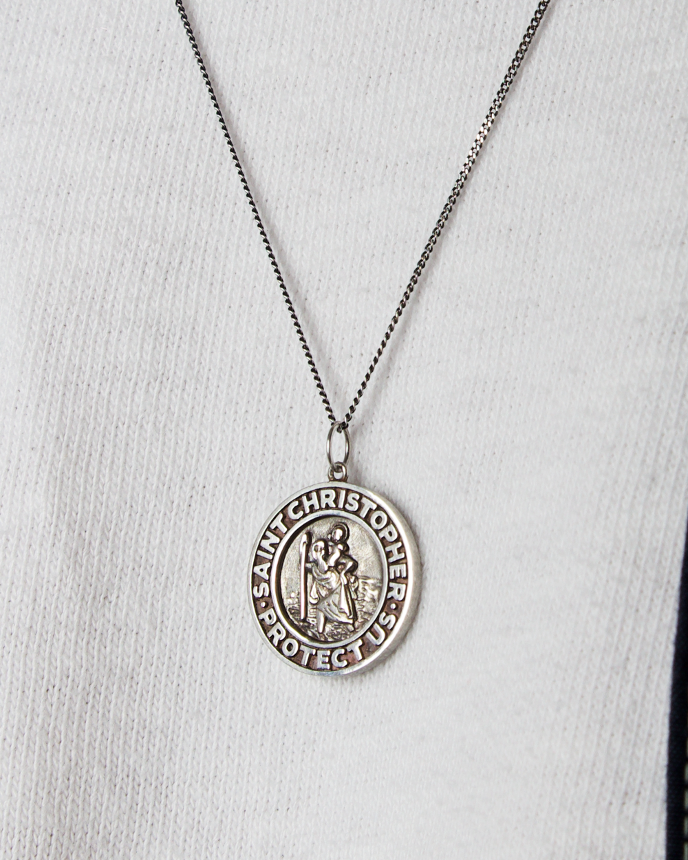 The St. Christopher Silver Pendant features a 20mm charm of Saint Christopher, the patron saint of travelers. Featuring a rugged, oxidized finish, this timeless silver pendant offers protection and makes a meaningful gift for the adventurous spirit.