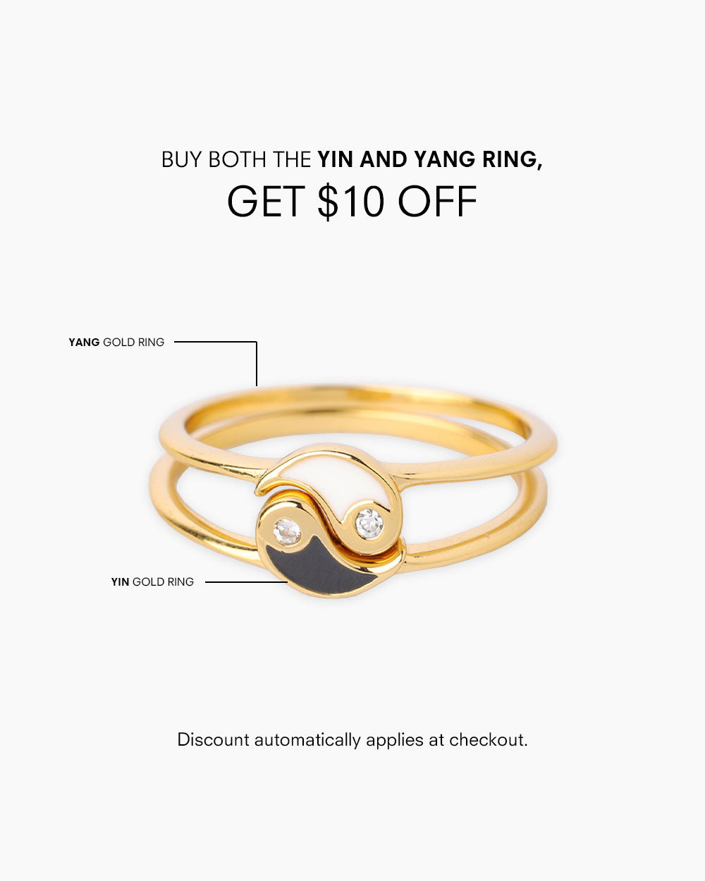 This elegant gold ring features a yang symbol, representing assertiveness and action. Wear it solo or stack it with the Yin Gold Ring for a balanced look.Buy both Yin and Yang Rings and get an automatic Php499 off at checkout
